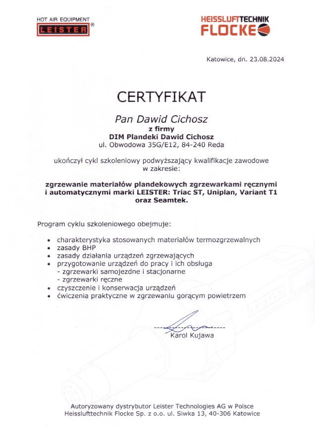 Jesteśmy producentem produktów z tkanin technicznych PVC (plandek), działającym na terenie do 150km od siedziby firmy, która znajduje się w Redzie.